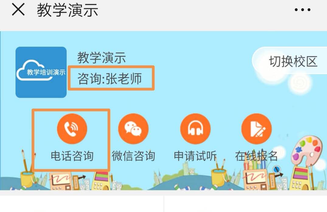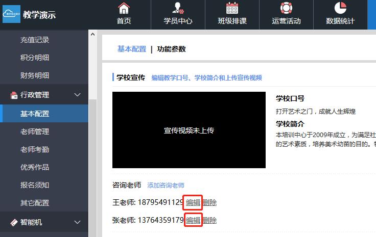 对外的咨询老师,展示在校区微官网,默认为开区表里提供的老师信息,可自行修改、添加或删除。