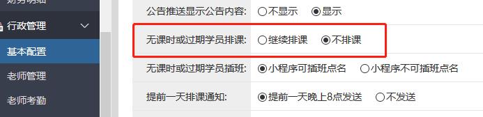 10、有效期:学员课程的结束时间(若只按课时计算,有效期可选择不限制),可设置有效期到后继续排课或不排课。(进入“功能参数”里设置)。