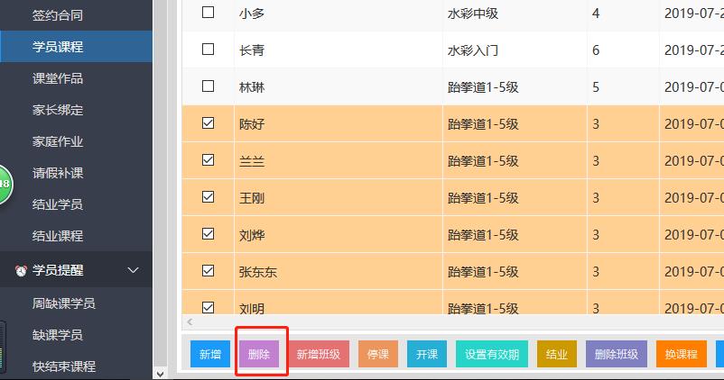 说明:删除学员课程后,该课程的所有数据都被删除,且不能恢复。