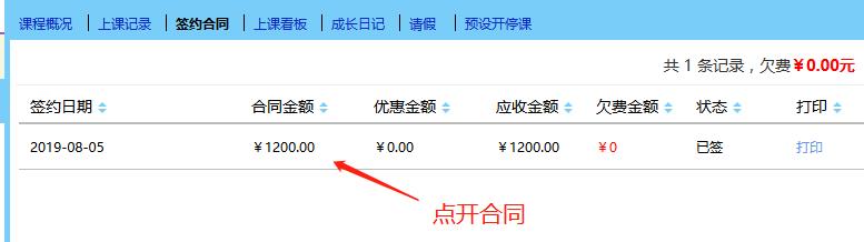 在“上课学员”里点开需要修改的学员,进入课程信息框里的“签约合同”,再点开合同,进入合同里的“编辑”修改总课时/课程总价后提交。