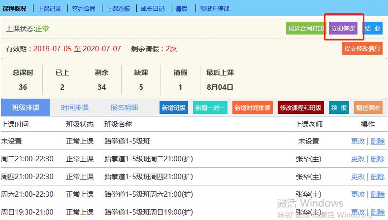设置停课或开课后,学员状态立即更新。