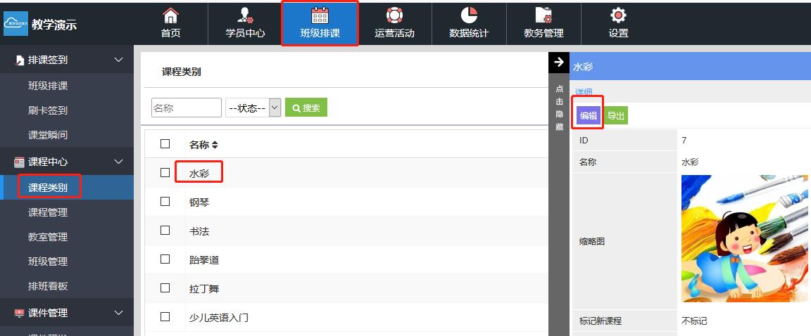 在“班级排课”里进入“课程类别”,点开需要修改的课程,进入右边弹框里的“编辑”,重新编辑后进入“提交”。