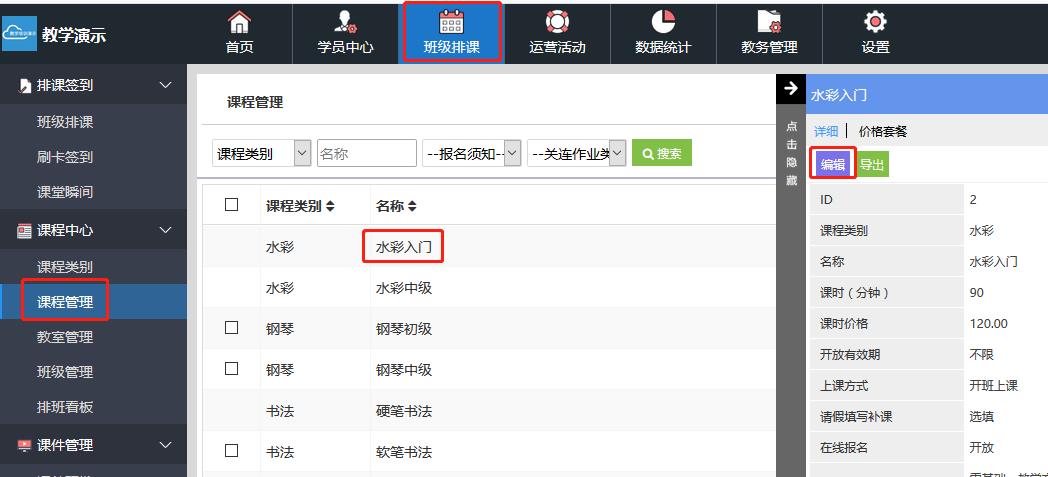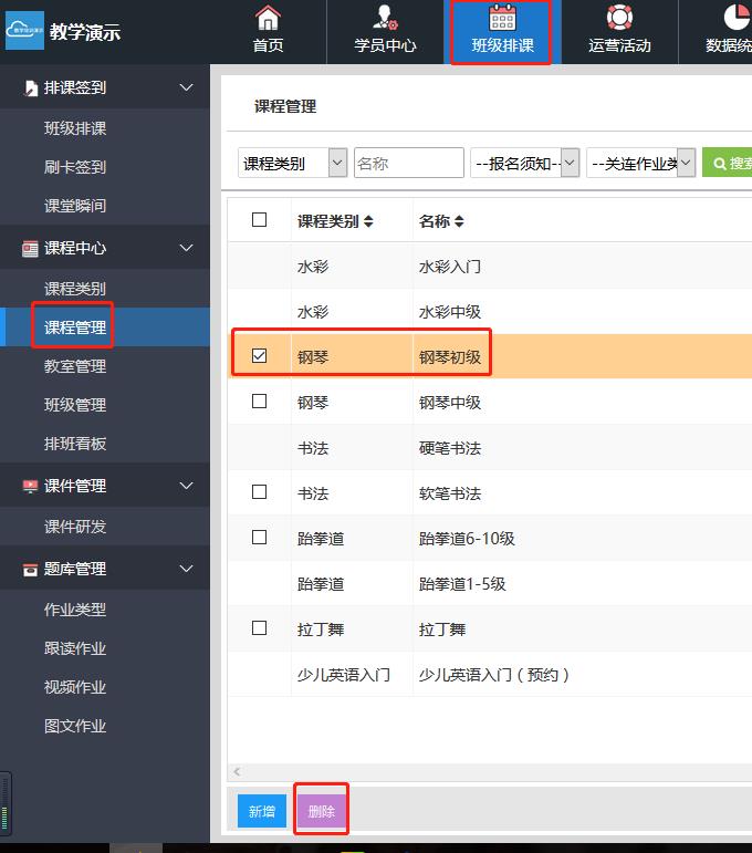 修改或删除教学课程