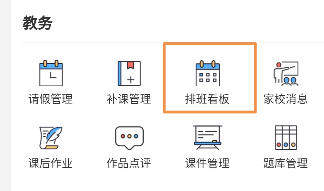 三、单个班级换时间上课或取消上课第1步:在小程序首页进入“排班看板”后搜索需要调课的日期。