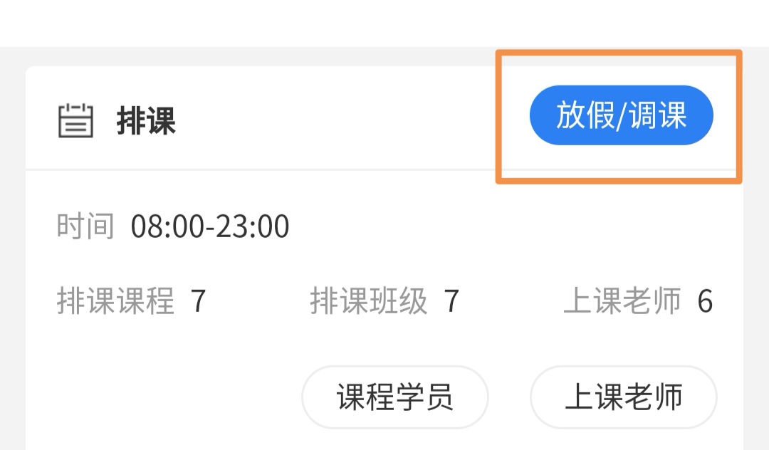 说明:单天或单个时间排课的临时变更,若需要长期停课或更改上课时间,需在后台“班级管理”里设置停课或修改上课时间。