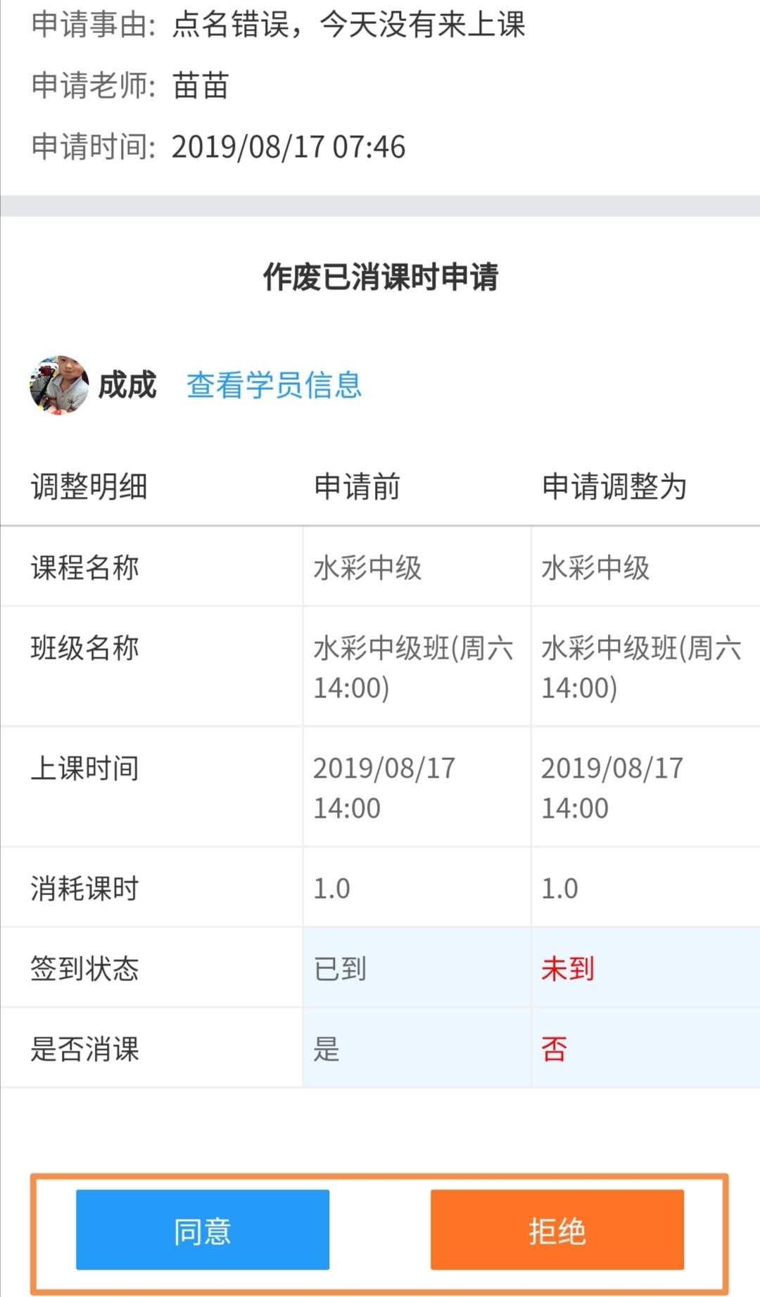 授课老师职位在小程序里作废学员点名需校长(总管理员)审批通过才可以作废成功。